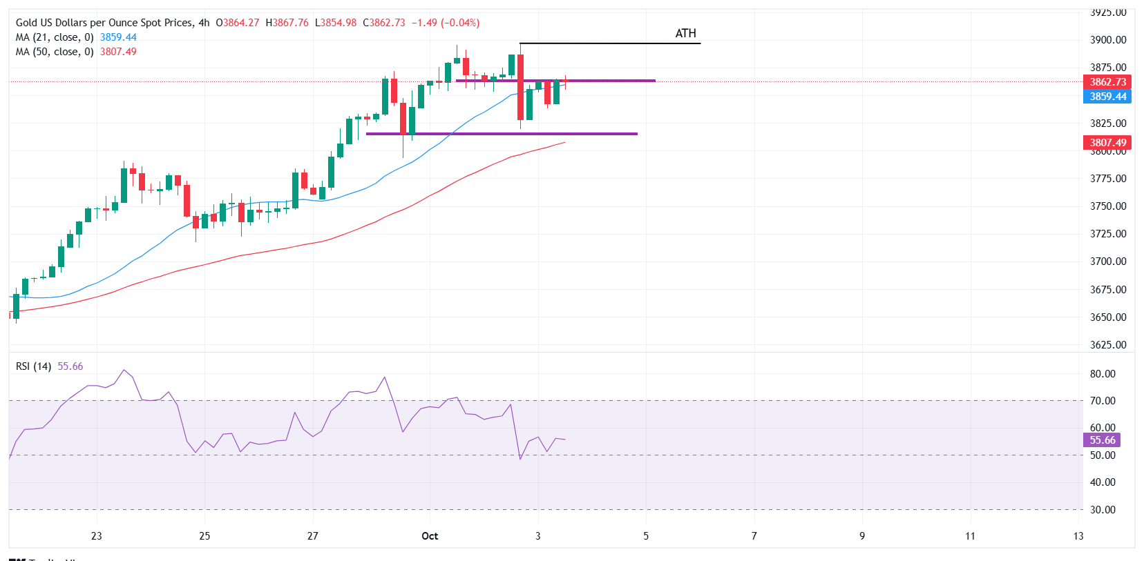 标题:金价在美国政府停摆持续的情况下交易于历史高点下方;美国供应管理协会(ISM)服务业采购经理人指数(PMI)疲软