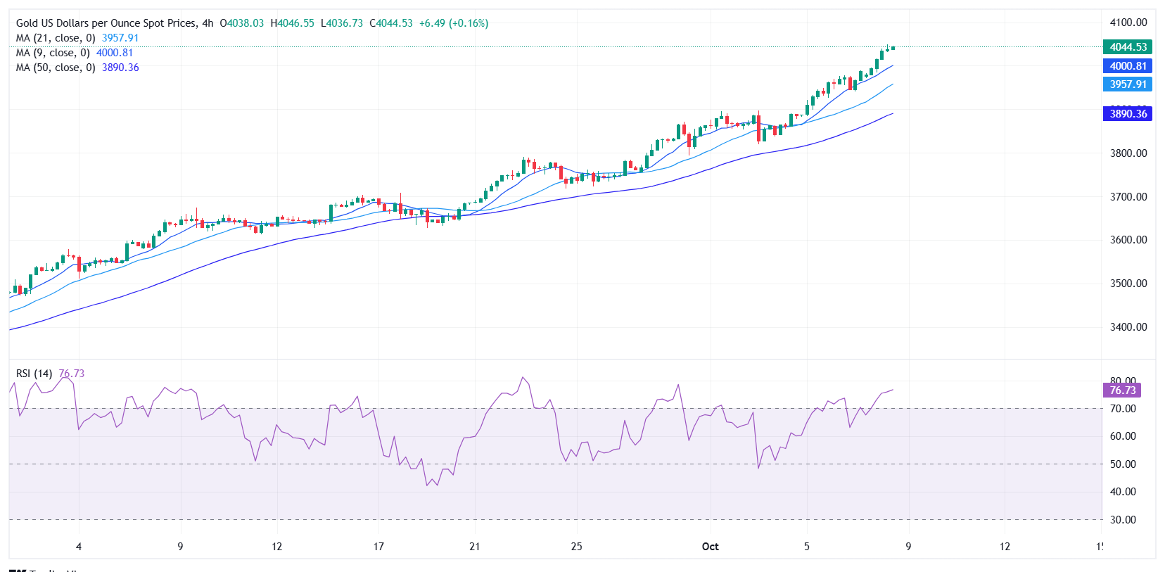 黄金(XAU/USD)在周三再创里程碑,首次突破4,000美元关口,投资者在全球经济和政治不确定性以及美联储(Fed)鸽派前景的推动下纷纷涌向这一贵金属。