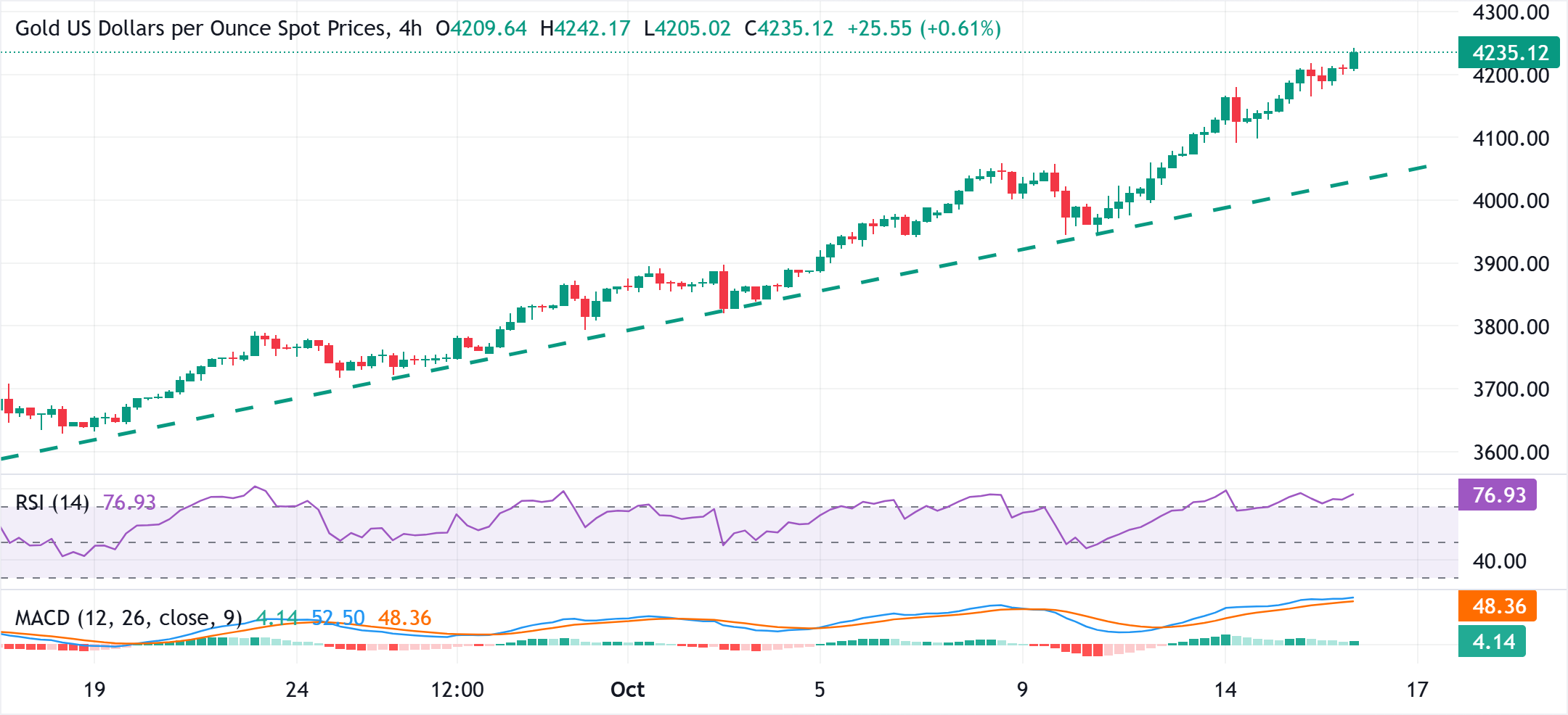 黄金(黄金/美元)在周四亚洲时段稍微回落,未能维持新创历史高点,但在支持性基本面背景下,连续第五天保持看涨偏向