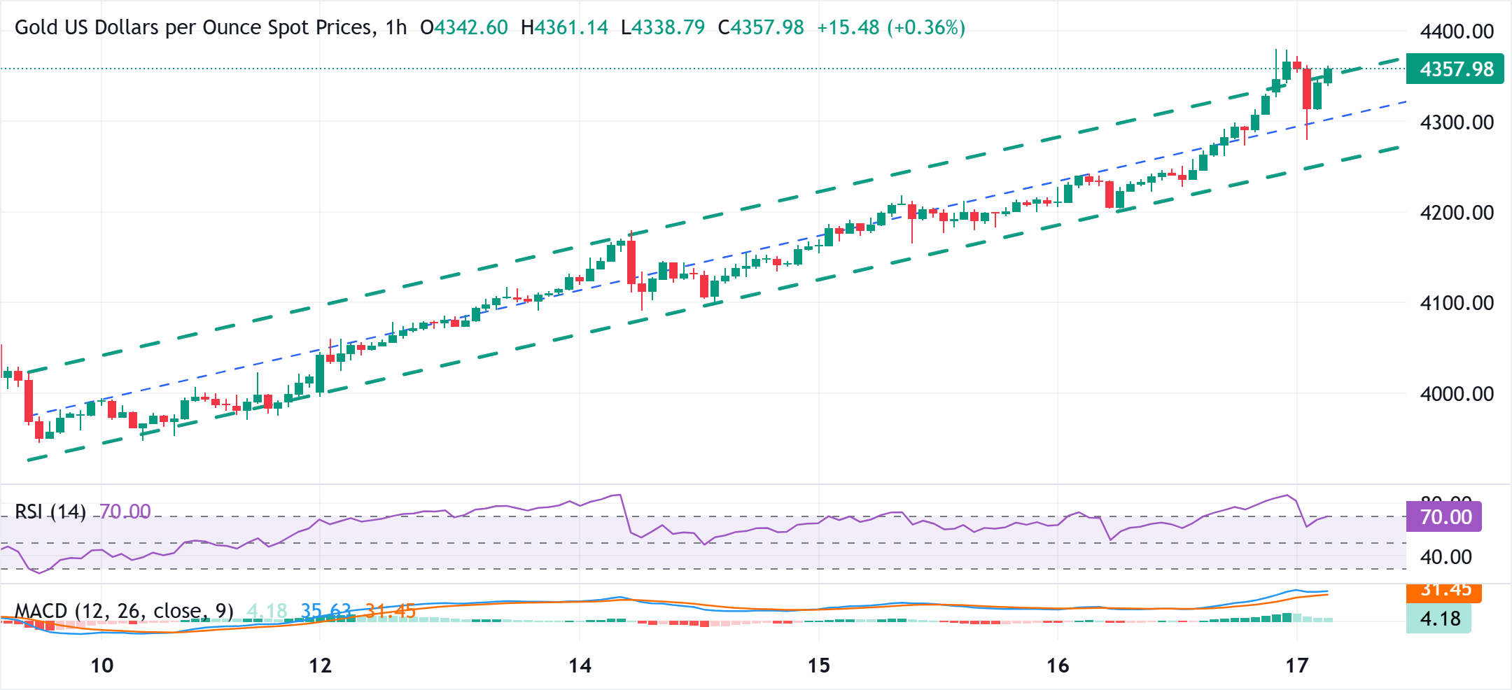 黄金(黄金/美元)在周五早盘欧洲时段维持其看涨偏向,接近历史高点,并有望连续第九周录得强劲涨幅