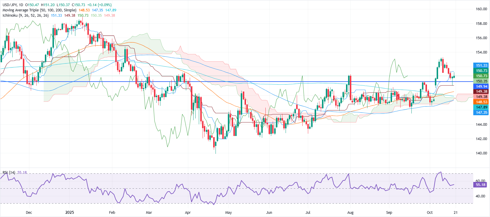 美元/日元在周一保持坚挺,徘徊在150.60附近,受美联储静默期和由于政府停摆导致缺乏美国数据的影响,市场风险偏好上升。美国总统唐纳德·特朗普缺乏市场影响力的言论,可能使该货币对维持在熟悉的水平。