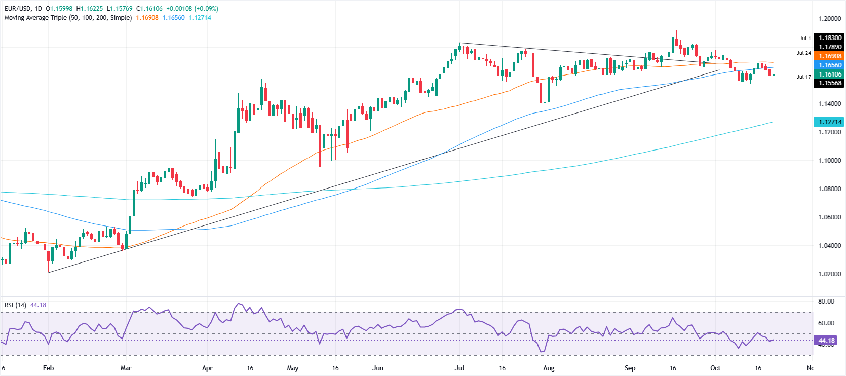 在周三,欧元/美元在1.1600附近保持坚挺,因大西洋两岸经济数据稀缺,市场参与者在等待周五公布的延迟的美国消费者物价指数(CPI)报告。