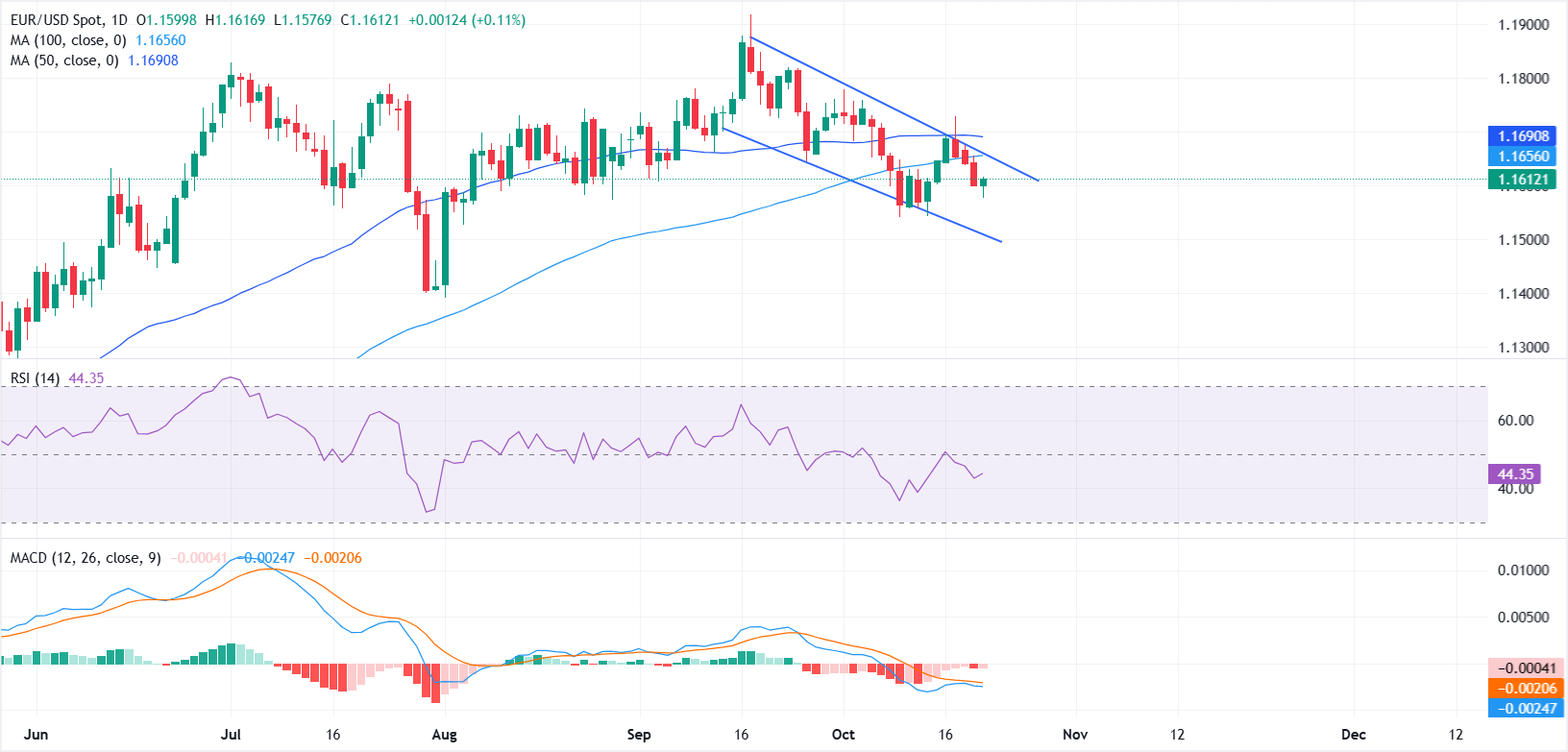 欧元(EUR)在周三对美元(USD)小幅走高,结束了三天的下跌趋势,因美元失去动能。截至发稿时,欧元/美元交投于1.1611附近,从日内低点1.1576反弹。