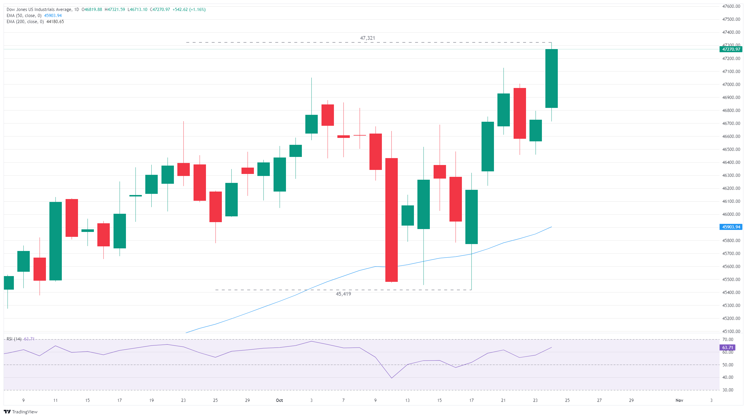 道琼斯工业平均指数(DJIA)在周五缓慢攀升至历史新高,首次出现日内买盘超过 47,300。