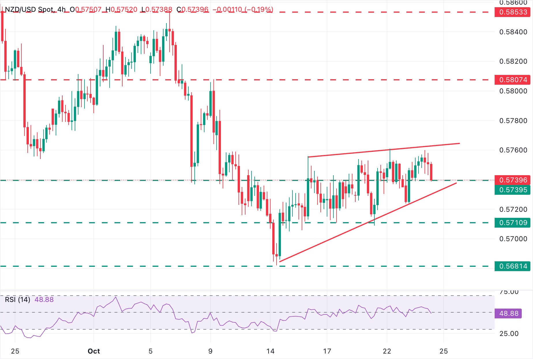 新西兰元在周五回吐之前的涨幅,跌至0.5740以下,之前一周高点约为0.5760,市场走势平淡,交易者在等待今天稍后公布的美国消费者物价指数。美元在主要货币对中维持近期区间交易,因全球贸易的不确定性。美国总统特朗普在宣布对中国的软件出口限制几天后,称与加拿大的谈判已终止,这加剧了与世界两大经济体之间本已脆弱的关系,抑制了投资者的风险偏好。 标题:纽元/美元价格预测:在美国CPI数据发布前下滑至0.5740以下