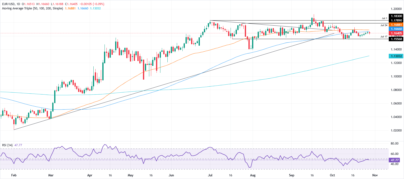 周三,欧元/美元在1.1650-1.1635区间内震荡,因美联储(Fed)如预期降息25个基点,但会议上有两位成员持异议。在撰写本文时,该货币对波动交易,交易者在等待美联储主席鲍威尔的新闻发布会。