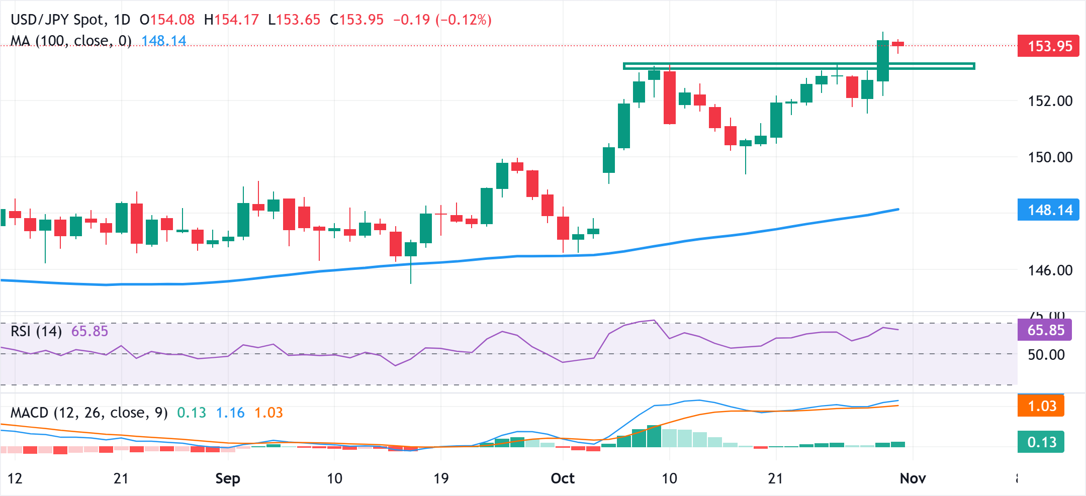 日元(JPY)在周五进入欧洲交易时段时吸引了新的卖盘,并对美元保持前一天触及的自2月以来的最低水平附近。来自东京——日本首都的消费者通胀数据强劲,重新点燃了市场对日本央行(BoJ)即将加息的押注。然而,初步市场反应似乎是短暂的,因为交易员似乎相信日本央行可能会抵制进一步的政策收紧,预计日本首相高市早苗将推行激进的财政支出计划。这反过来又抑制了日元的温和盘中上涨。 标题:日元对美元回落,接近八个月低点