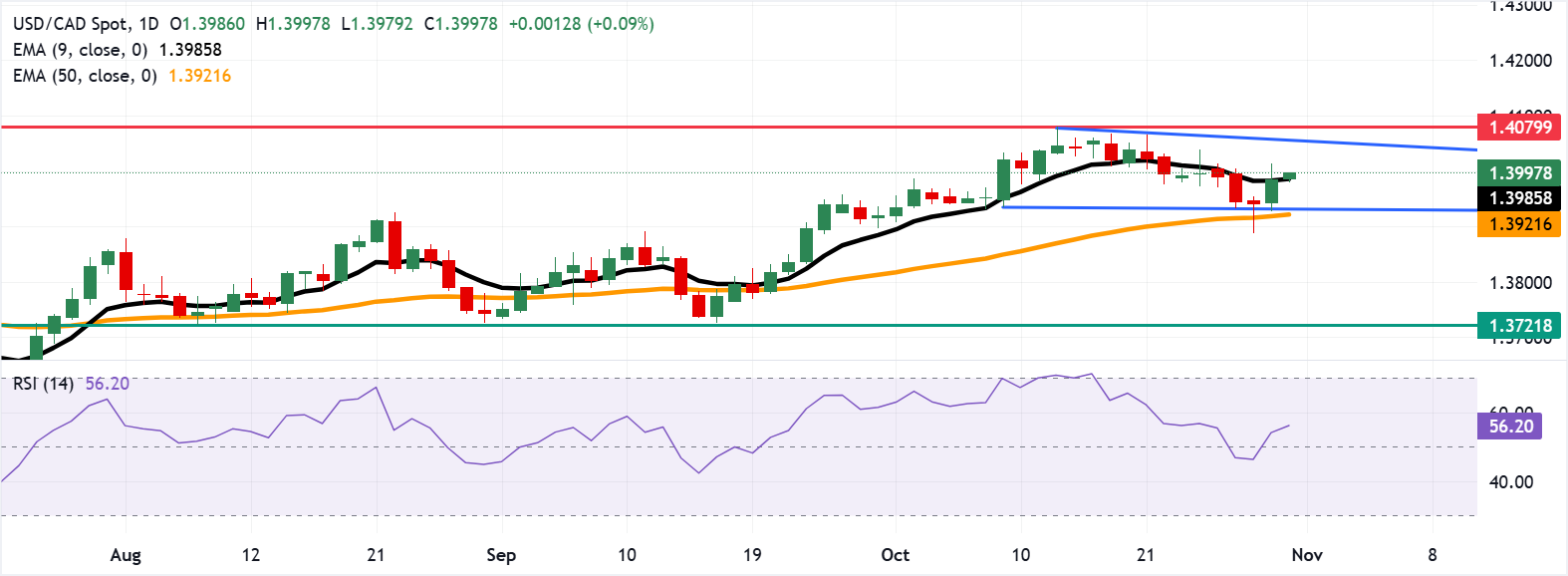 标题:美元/加元价格预测:在突破九日指数移动平均线后测试1.4000关口