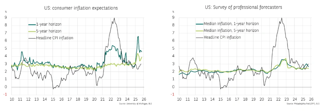 9月份,美国、欧元区和日本的通胀率均出现小幅反弹,而英国则保持稳定。在美国,关税带来的通胀影响迄今仍得到控制(见图表)。其他国家和地区则出现积极迹象:欧元区通胀预期稳定在2%左右,英国工资增长趋于缓和,日本生产者价格则在下滑。