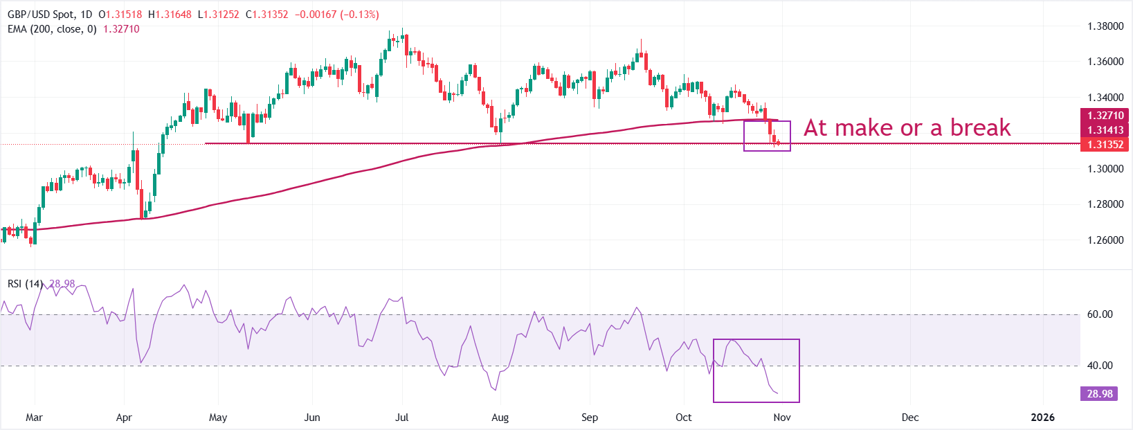 英镑(GBP)在周五继续对美元(USD)延续其下跌趋势,已是第四个交易日。英镑/美元交易接近周四创下的六个月新低1.3116。由于美国美元走强,加之美联储(Fed)对12月政策会议的鸽派预期减弱,以及美国与中国之间贸易协议的乐观情绪,英镑承压。
