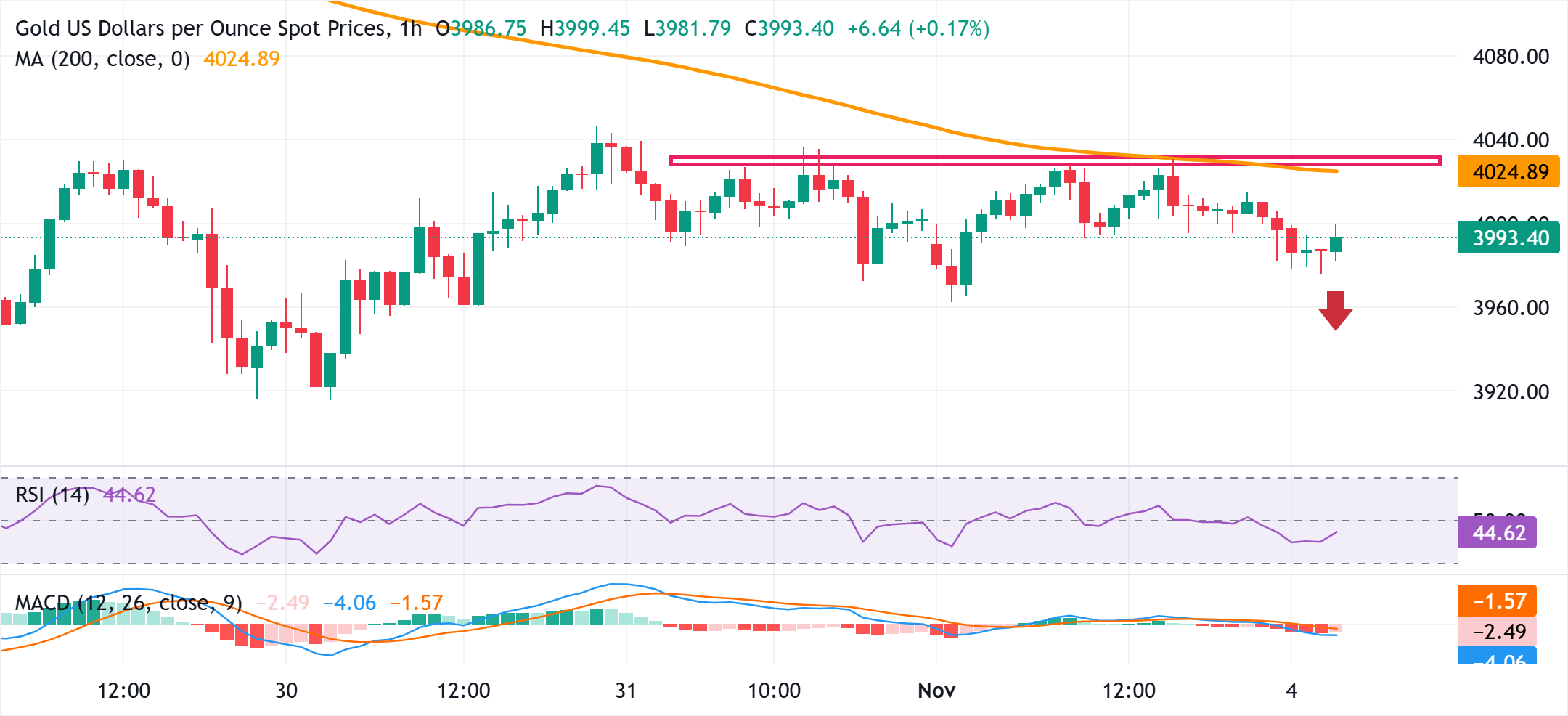 黄金(黄金/美元)在周二亚洲时段在4000美元心理关口下方维持负面偏向,尽管在混合的基本面信号中,下行似乎受到一定缓冲。由于美联储(Fed)的鹰派倾向,美元(USD)吸引买家,连续第五天上涨,并攀升至自8月初以来的新高,这反过来被认为对无收益的黄色金属施加压力。除此之外,全球金融市场的潜在看涨情绪也是削弱避险贵金属的另一个因素。 标题:在美联储鹰派引发的美元买盘的背景下,金价在4000美元以下维持卖盘基调