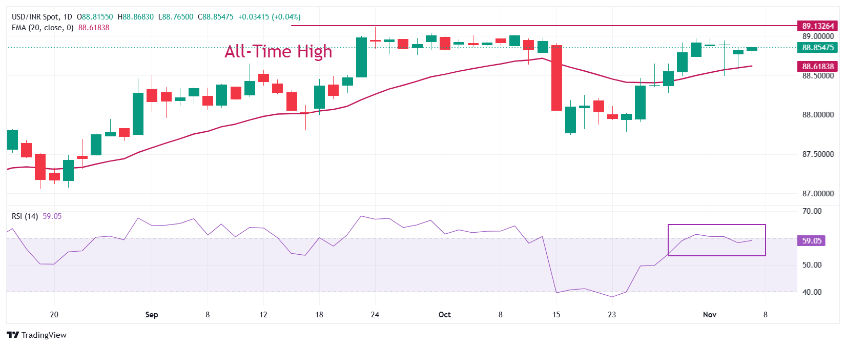 印度卢比(INR)在周五对美元(USD)谨慎交易。尽管美国总统唐纳德·特朗普暗示他与印度总理纳伦德拉·莫迪的关系稳定,USD/INR货币对仍上涨至接近88.75。