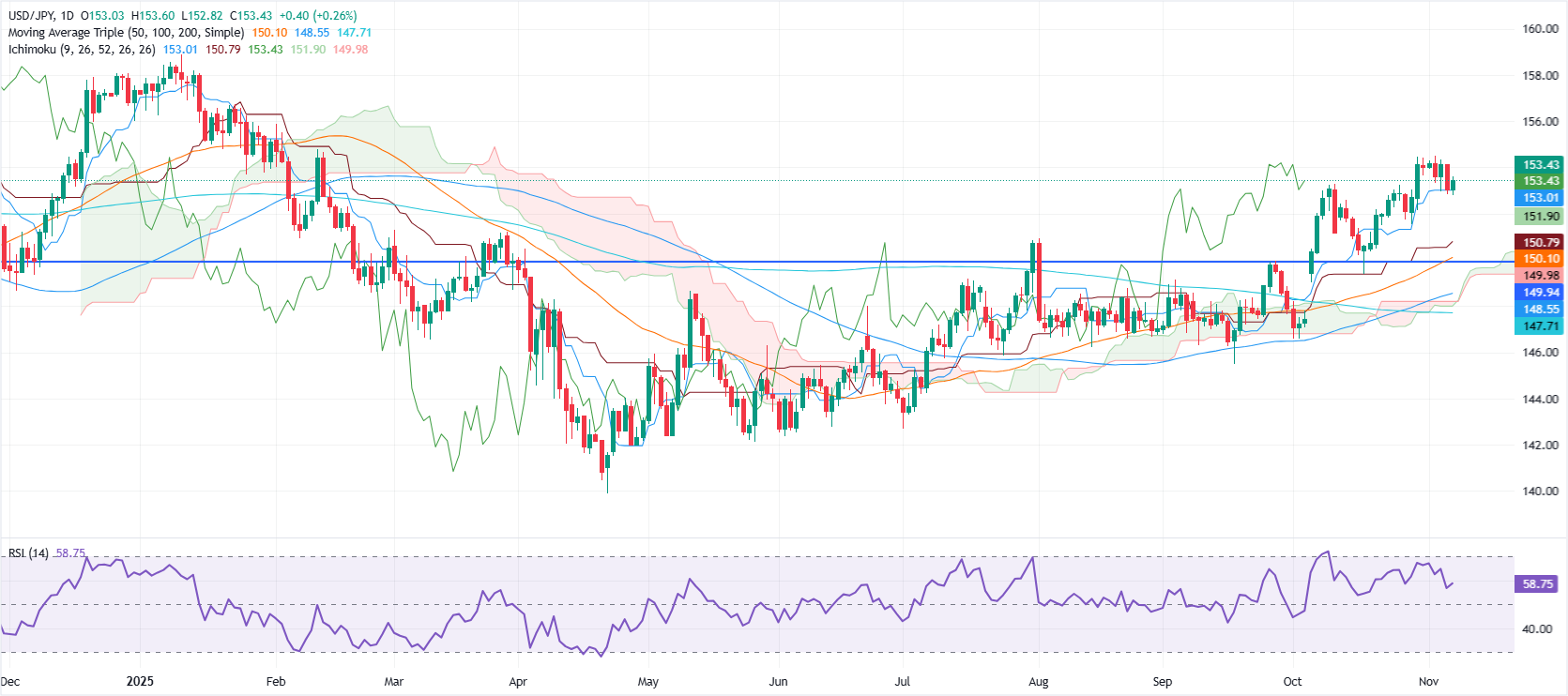 美元/日元在周五出现反弹,买方占据 153.00,表明短期内上涨趋势可能会恢复