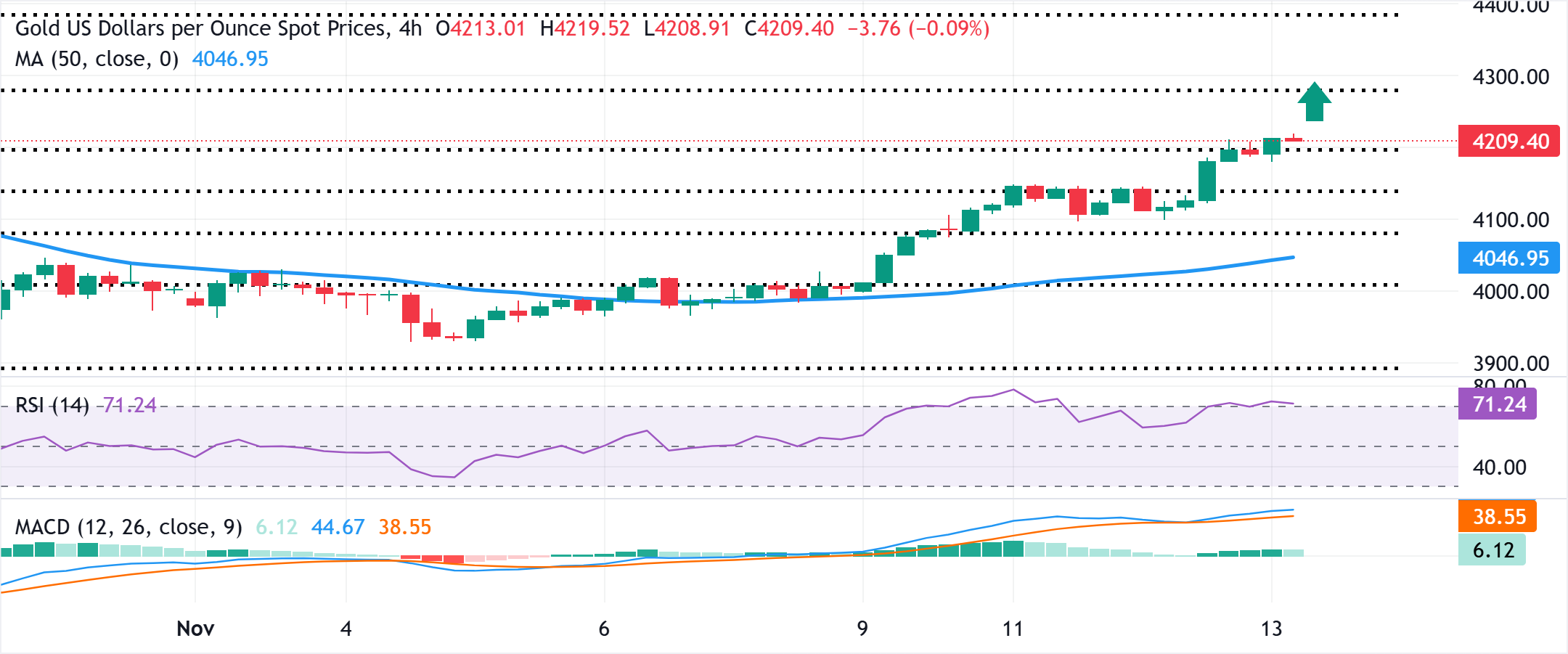 金价稳固在三周高位附近,超过4200美元,因市场押注美联储降息