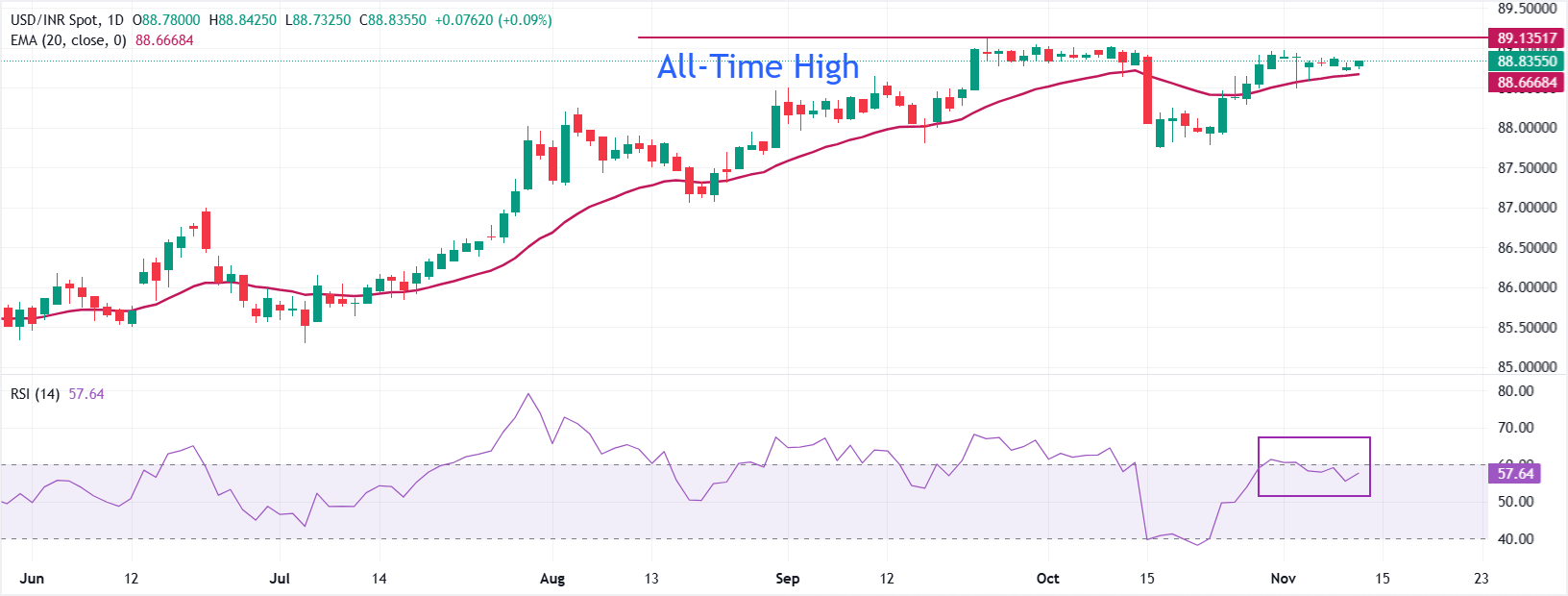 标题:美元/印度卢比因外国资金流出印度股市和鸽派印度储备银行(RBI)押注而上涨