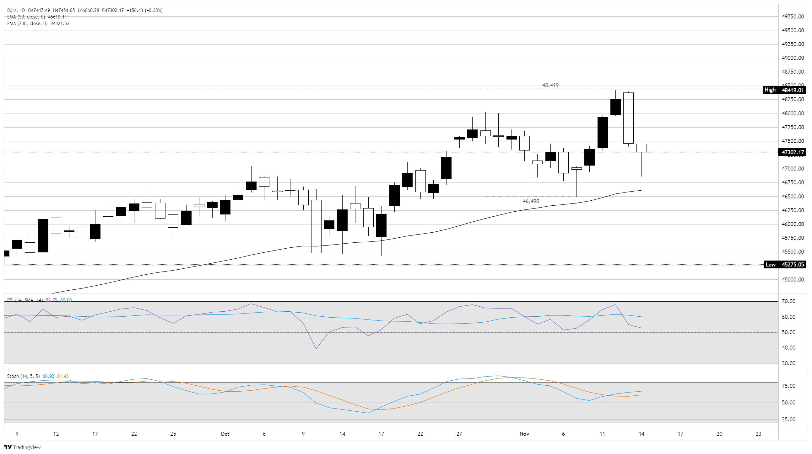 道琼斯工业平均指数(DJIA)在周五落后于其主要指数同行,最低回落近600点,随后进行了一次不太积极的反弹,将当天的损失缩减至约250点