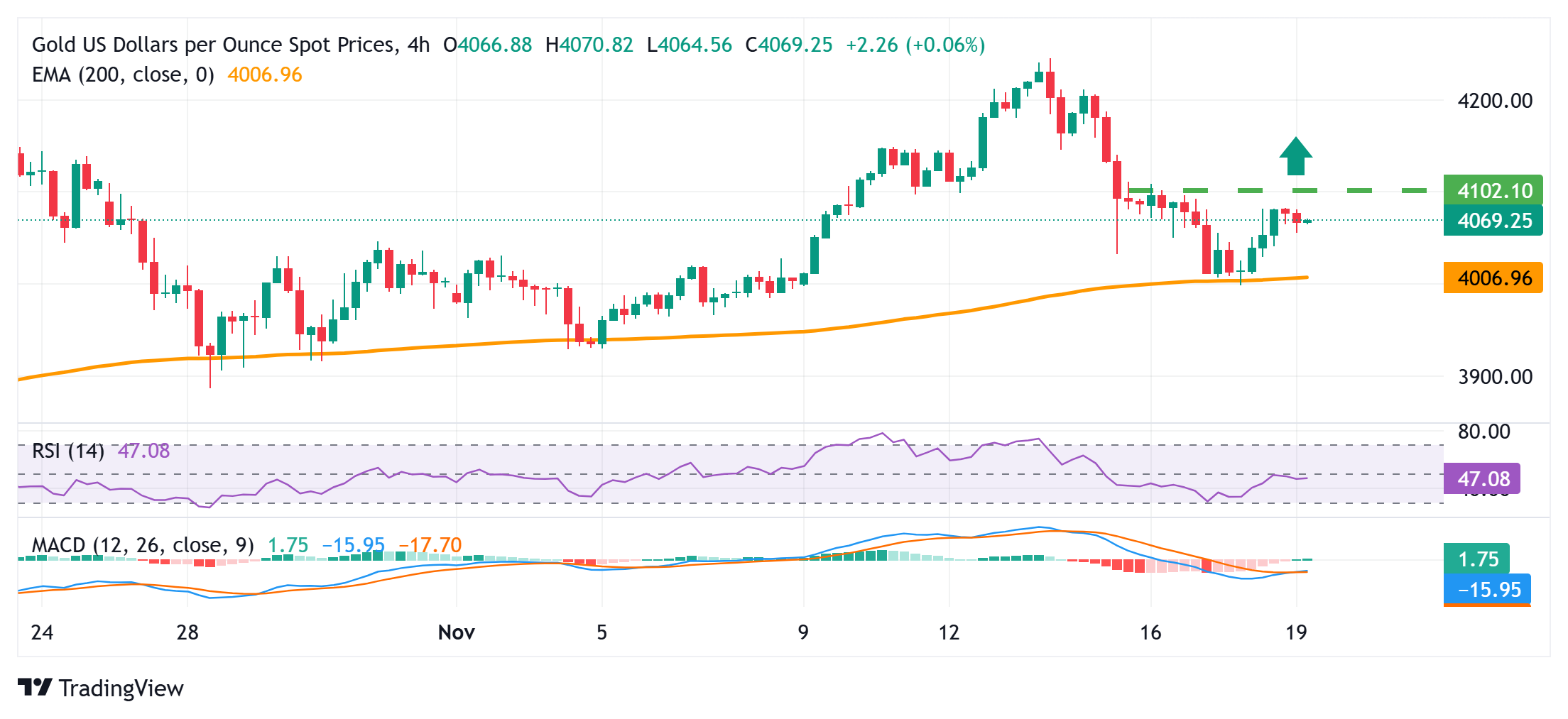 黄金(XAU/USD)在周三延续了前一天从接近4000美元心理关口(或一个半星期低点)附近的反弹,并连续第二天获得积极的牵引力。动能将金价推升至其周区间的上端,多头现在期待在4000美元整数关口上方持续突破,然后再为进一步的涨幅做准备,焦点仍然集中在今天稍后公布的FOMC会议纪要上。 标题:黄金价格攀升至4100美元附近,FOMC会议纪要前关注周高点