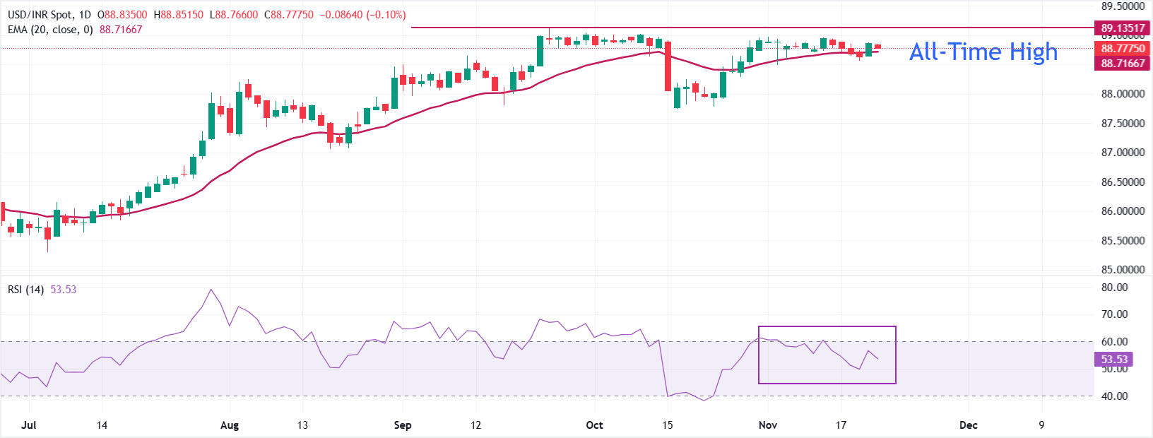 周五,在印度发布11月份初步汇丰采购经理人指数(PMI)数据后,印度卢比(INR)兑其主要货币对吸引了轻微的买盘。