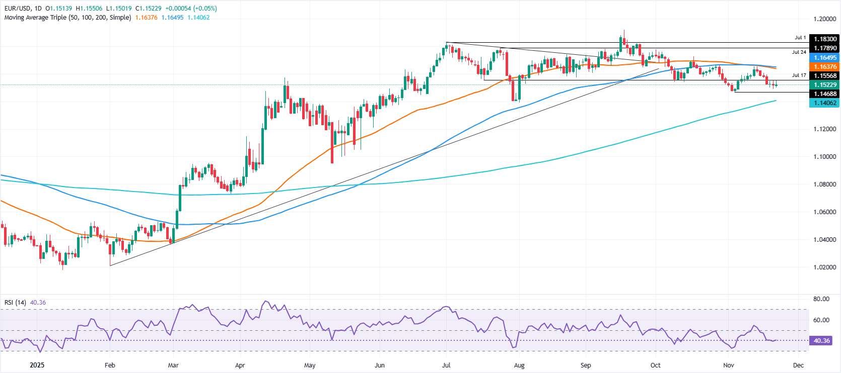 欧元/美元周一维持平稳,录得超过0.10%的小幅涨幅,尽管美联储(Fed)官员发表鸽派言论,美元(USD)仍在盘整。尽管降息预期上升,该货币对在触及日高1.1550后,现报1.1525。