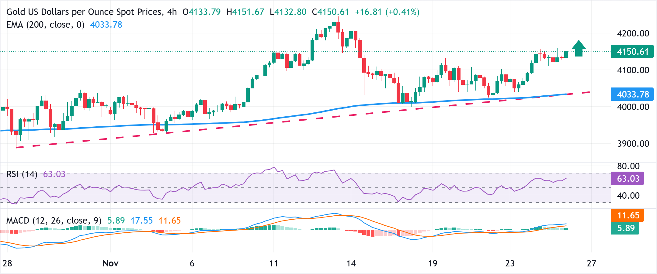黄金(黄金/美元)在进入欧洲时段时保持买盘情绪,目前交易接近一周半的高点,周三早些时候触及。由于美国生产者价格指数(PPI)在周二发布,显示出通胀降温的迹象,交易者加大了对美联储(Fed)再次降息的押注。此外,几位美联储官员支持进一步政策宽松的观点,这使得美元(USD)跌至一周低点,并为无收益的黄金提供了顺风。 标题:金价稳居两周高位附近,因鸽派美联储预期打压美元