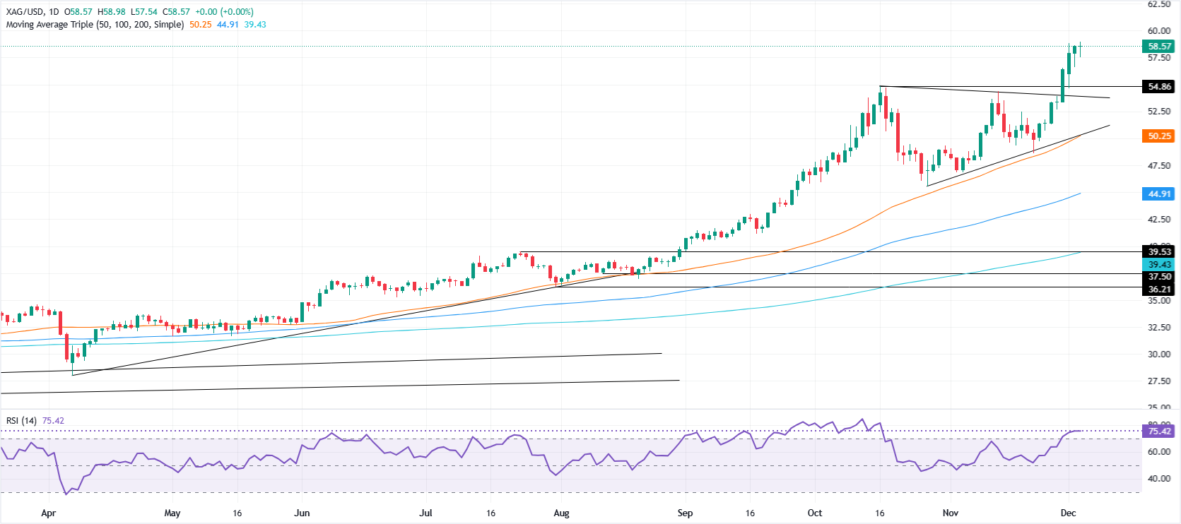 白银价格分析:上行趋势保持,RSI背离信号显示修正风险