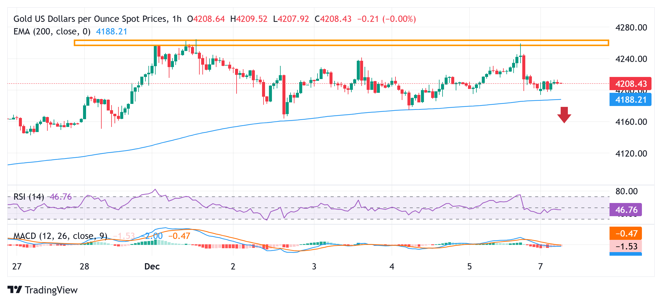 标题:金价在4200美元上方保持适度涨幅,因鸽派美联储预期对美元施加压力
