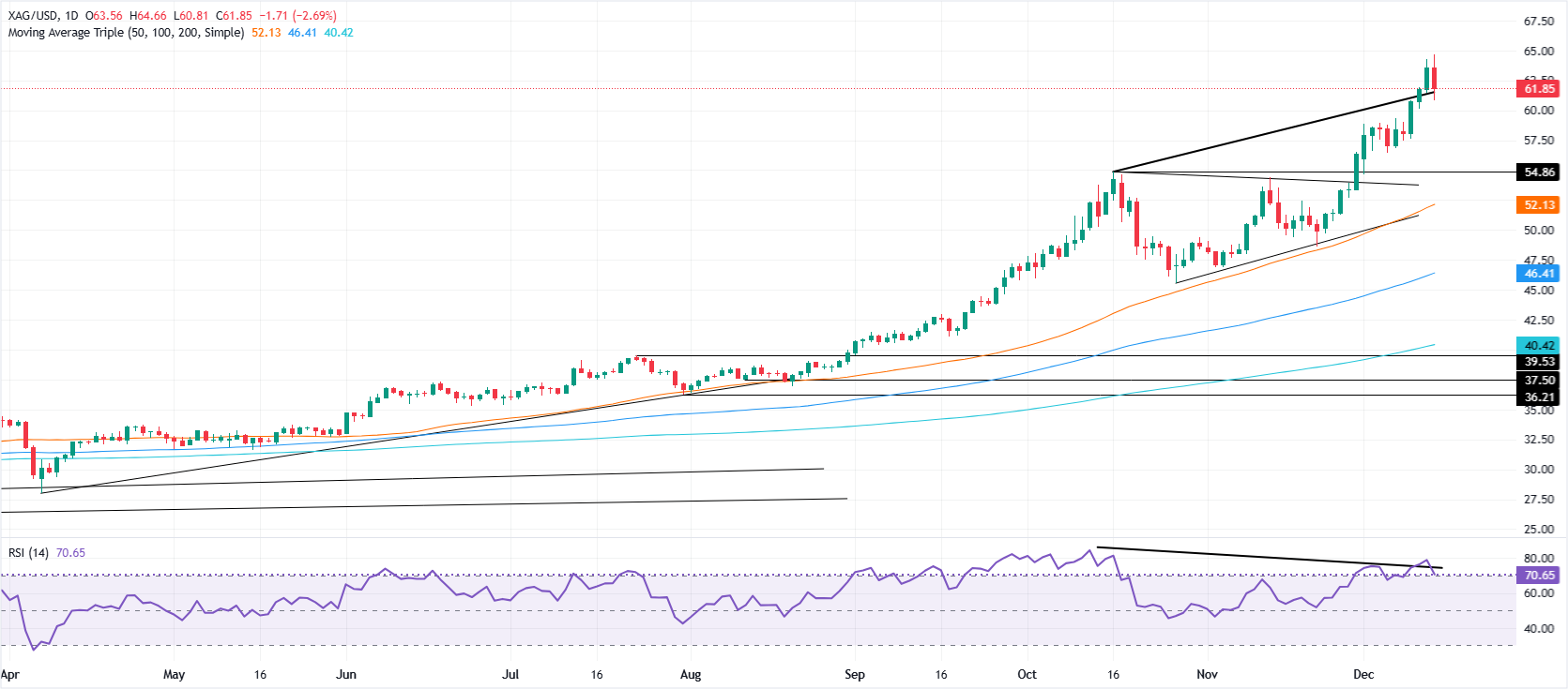 标题:白银价格分析:在触及历史高点后下跌,回调风险隐现