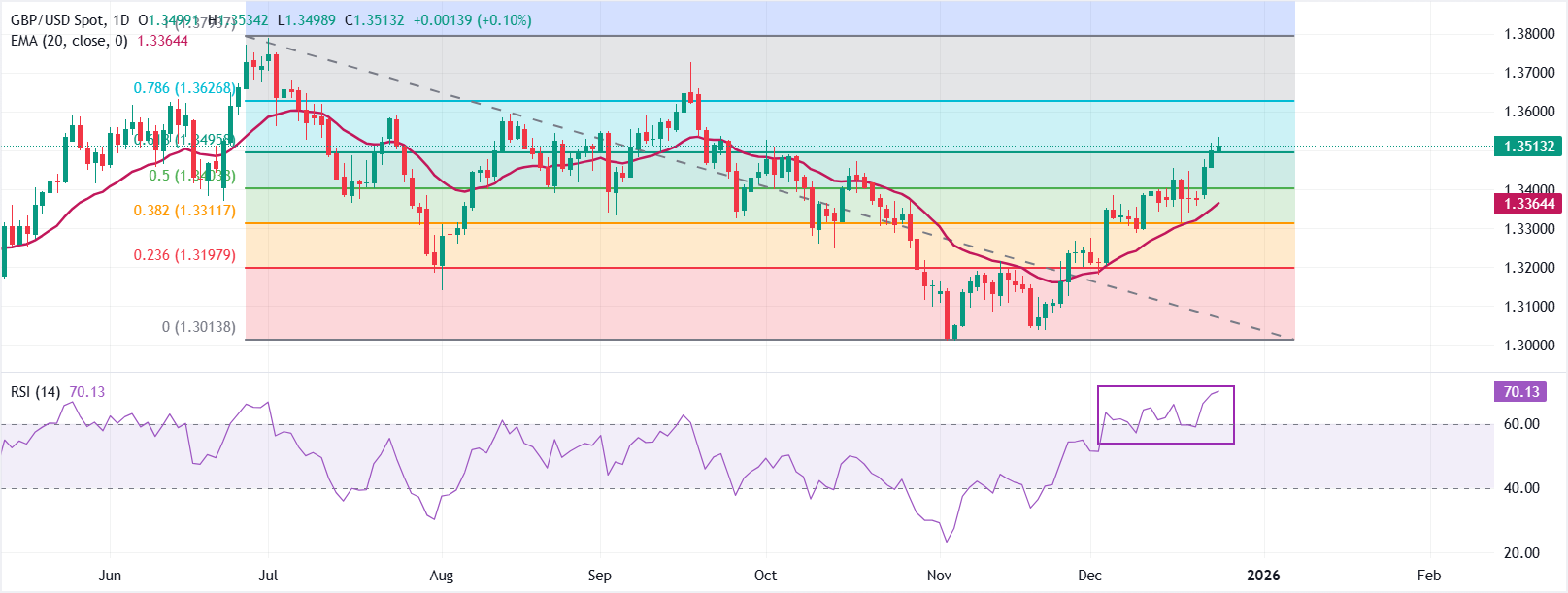 英镑(GBP)在周三的欧洲交易时段重新回到约1.3535的三个月高点,兑美元(USD)上涨。
