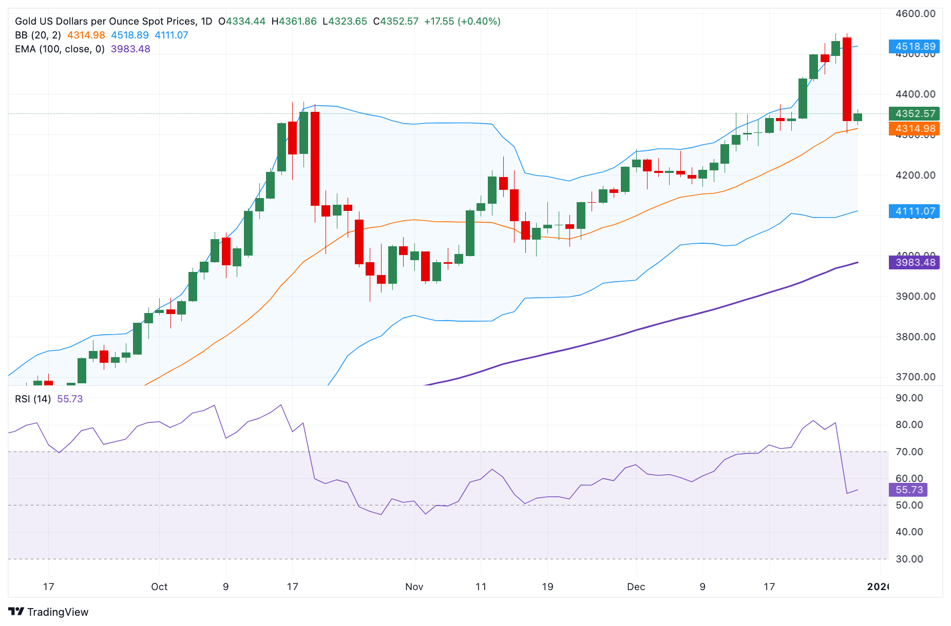 周二早盘,黄金价格(黄金/美元)在欧洲交易时段小幅上涨至4350美元上方。在前一交易日下跌4.5%后,这一贵金属恢复了一些失去的地面,这是自十月以来黄金最大的单日跌幅。